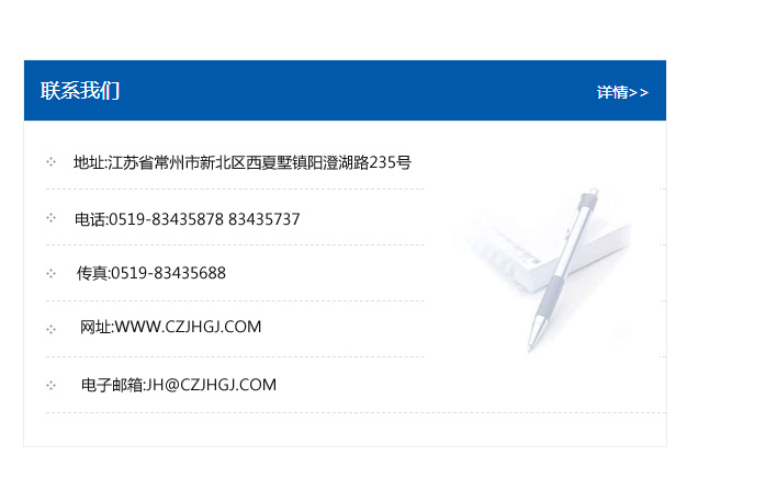 傳真:0519-83435688    郵編:213135    網址:WWW.czjhgj_com.fzshcy.com    電子郵箱:JH@czjhgj_com.fzshcy.com